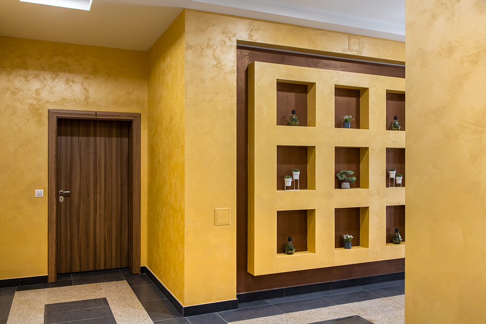 Декоративната боя PERLA COLORE е готова и лесна за употреба. Нанася се в един слой без допълнително разреждане. Работи се без прекъсване, от ръб до ръб, с къси движения и без голям натиск върху четката.